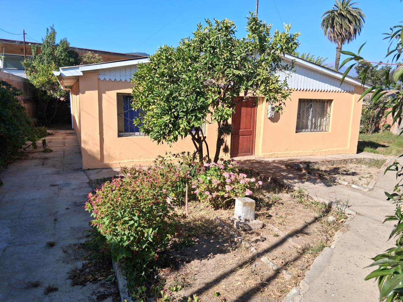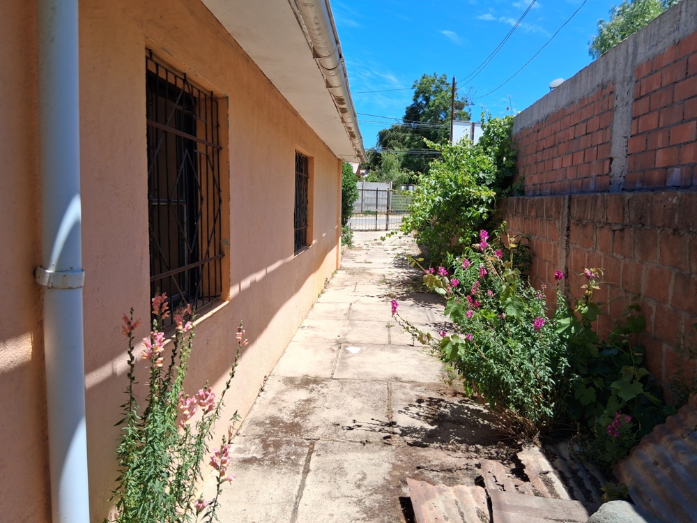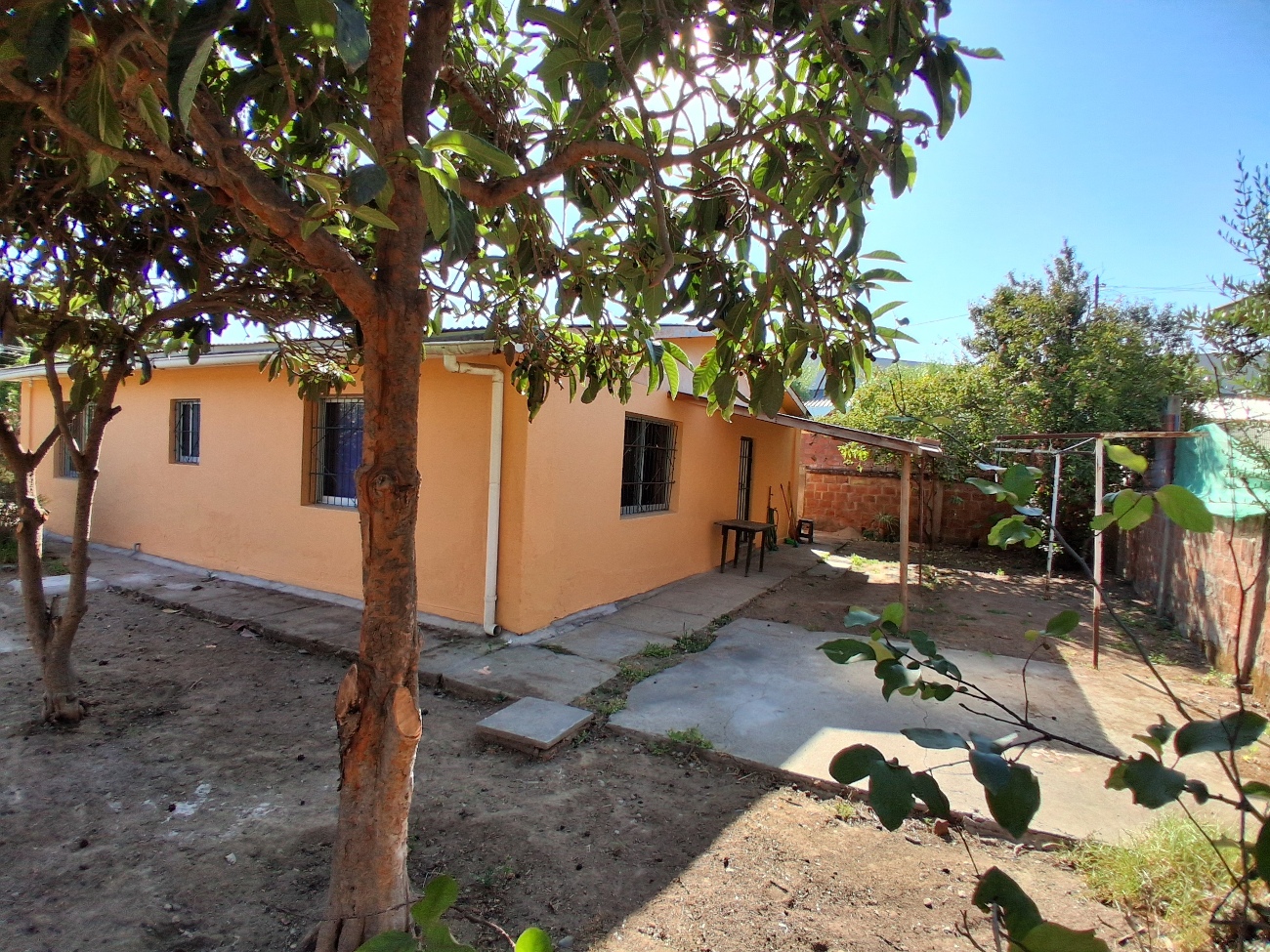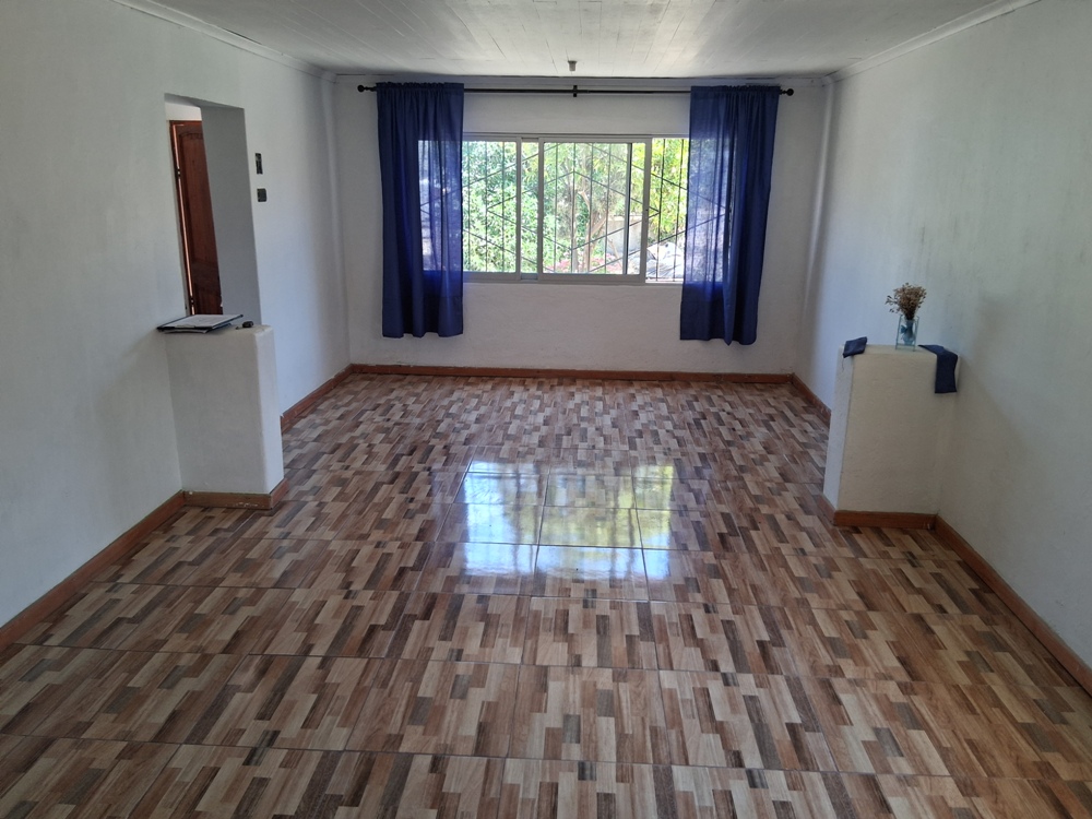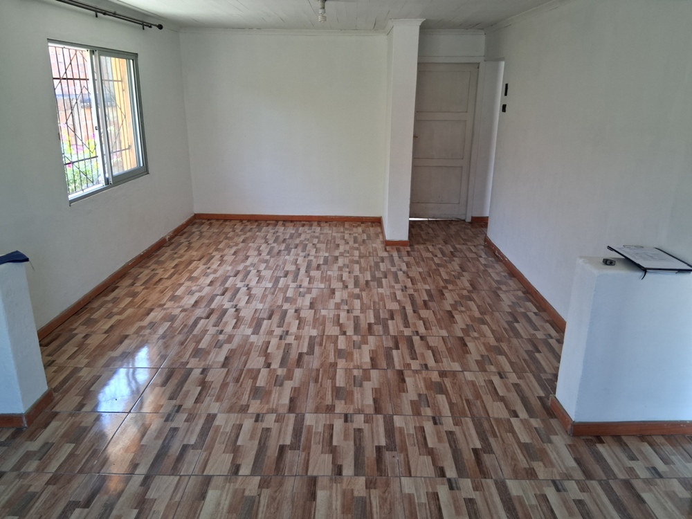 | Confortable casa solida de 1 piso, orientación oriente poniente; con amplio living comedor, pasillo distribución, 2 amplios dormitorios, (uno con closet), 1 baño completo, espaciosa cocina con factibilidad de comedor diario. Todo bien iluminado y soleado. Antejardin, 2 a 3 estacionamientos descubiertos, amplio patio lateral y posterior, pequeña piuleta, árboles frutales en producción, manzano, ciruelo, limonero, nispero, naranjo. Inmediato a locomoción colectiva local, colegio básico,y jardin infantil, a 8 cuadras aproximadas del Troncal Urbano y Centro Comercial Las Araucarias, municipalidad etc.