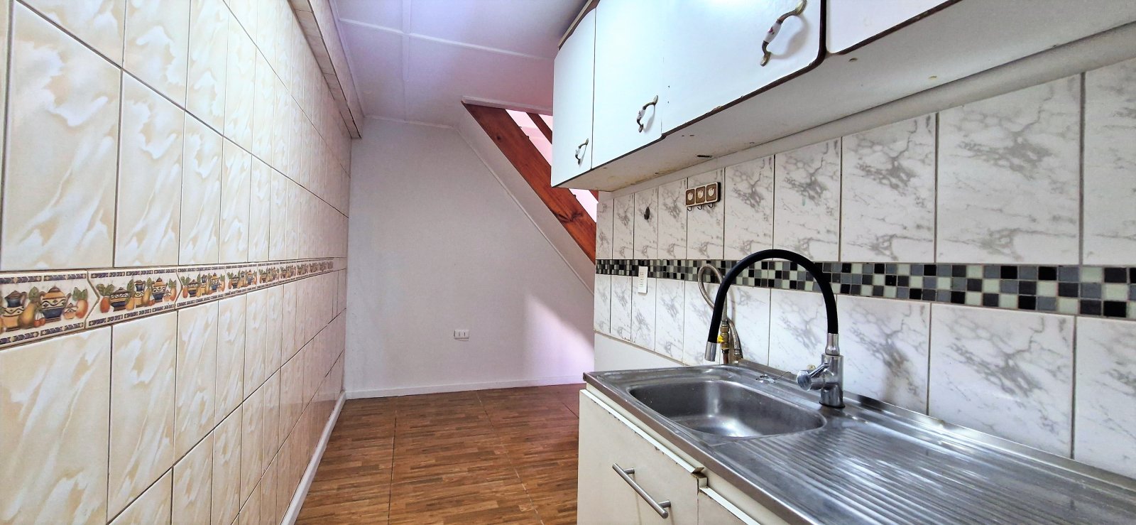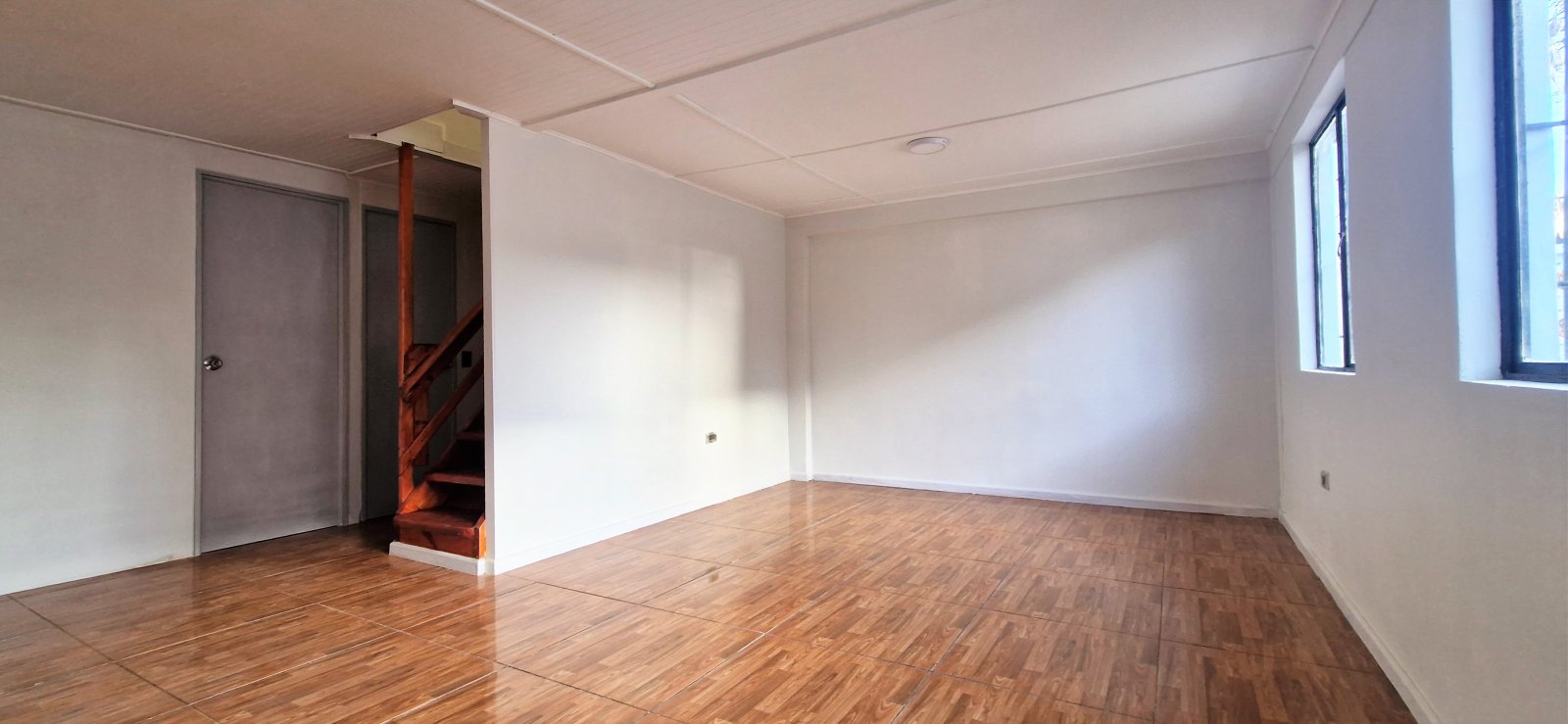 Casa pareada, construida en albañilería afinada en el primer piso y material liviano en el segundo, cuenta con tres dormitorios (1 en piso 1 y 2 en el segundo piso)